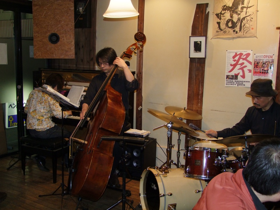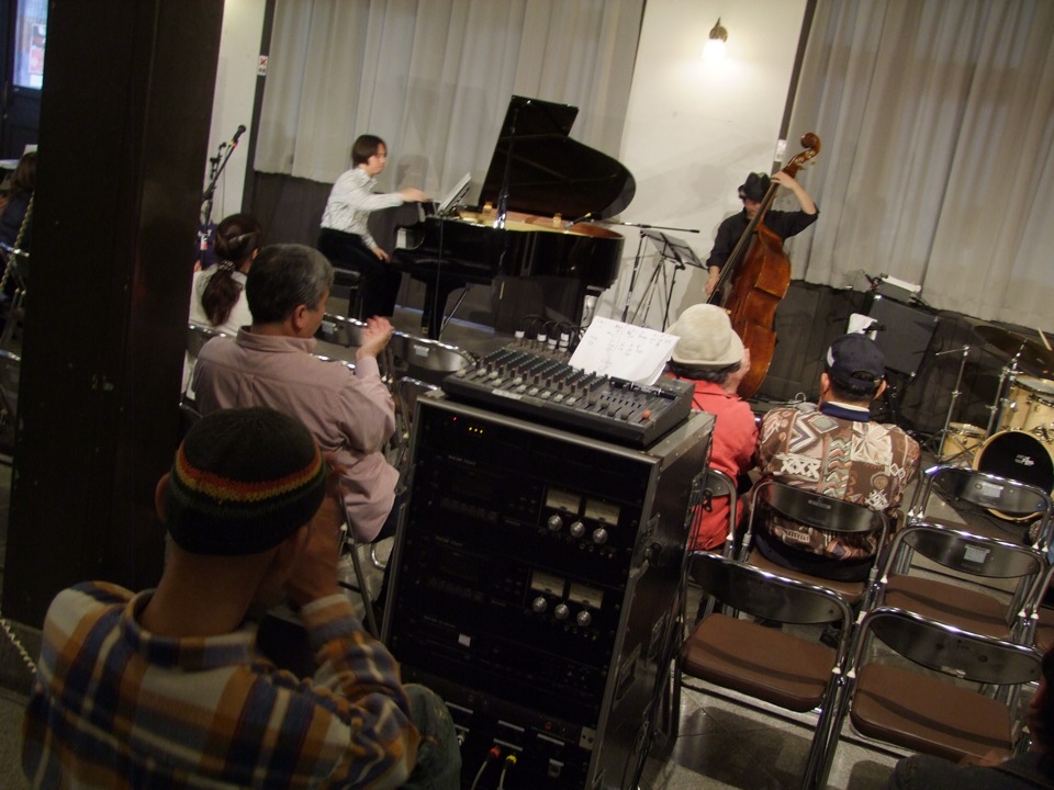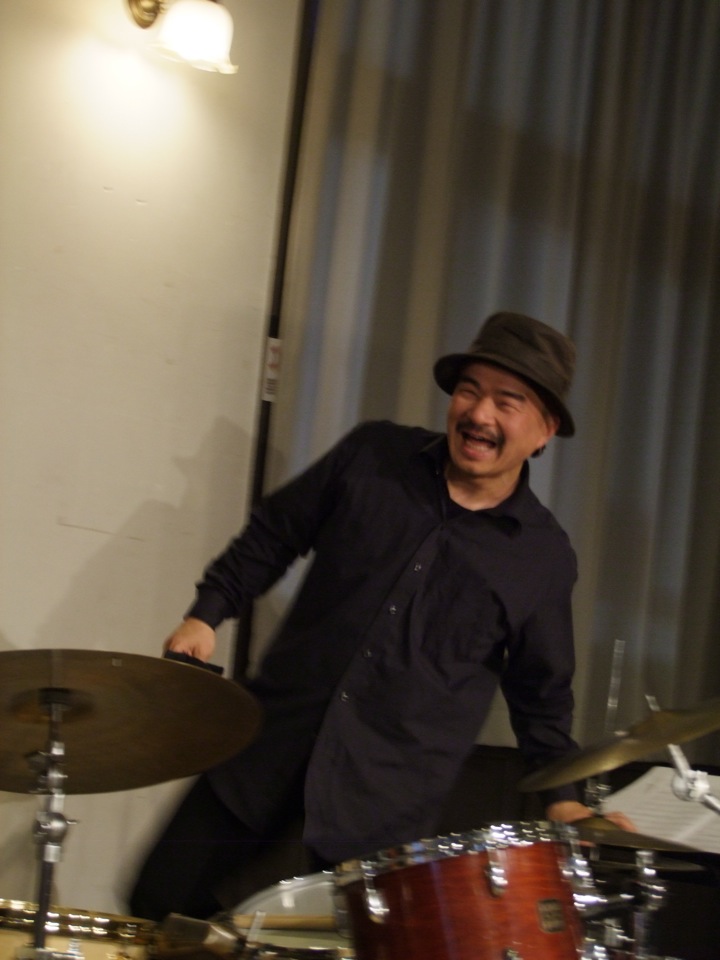 ライブは好きにやって良い…とマスターの意向を聞きつつ(笑)、やはりツアー初日なので、それなりの構成をもって臨みたいところではありました。また、今回も全盲のトランペッターである小倉久司さんにゲストでお越し頂き、ステージの半分くらいを共演という形で演奏させて頂きました。