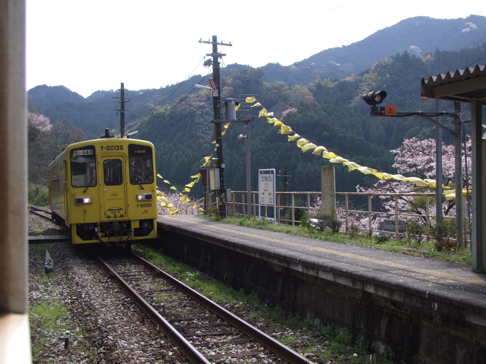 しかし、お腹の満足度とも相まって、ここでも眠気が襲ってきてしまいました。先程の山口線程ではありませんでしたが、やはり行程の半分くらいは眠ってしまっていたかもしれません…。車両もロングシートのものだったので、窓を背にして座っているのが億劫だった事も無関係ではないと思いますが、また惜しい事をしてしまいました…。天気が良ければもう少しは…と、一応言い訳程度の事を書き留めておきたいと思います(笑)。