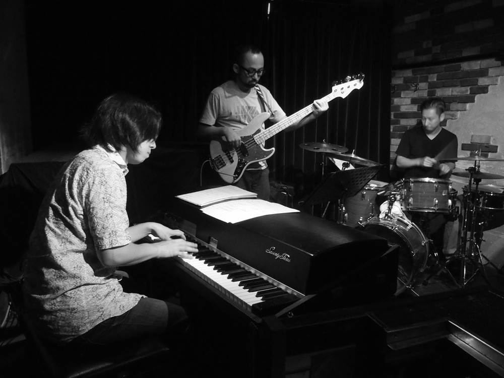 …とは言え、実際にローズを使って皆で音を出すのはこれが初めてになるので、念の為に自分のキーボードも用意してはいたのですが、リハーサルでローズを試し弾きしてみて(…写真ではリハーサルの写真がありませんが…笑)、全く問題無い…むしろイイ!という事になりました。こうして Nautilus の3回目のライブは、ローズを取り入れてのライブとなり、ある意味で完成形として皆さんに披露出来る形になったのでした。