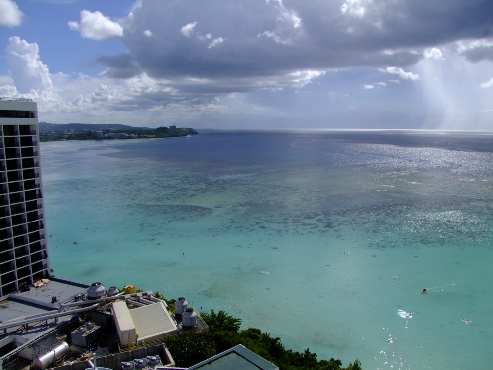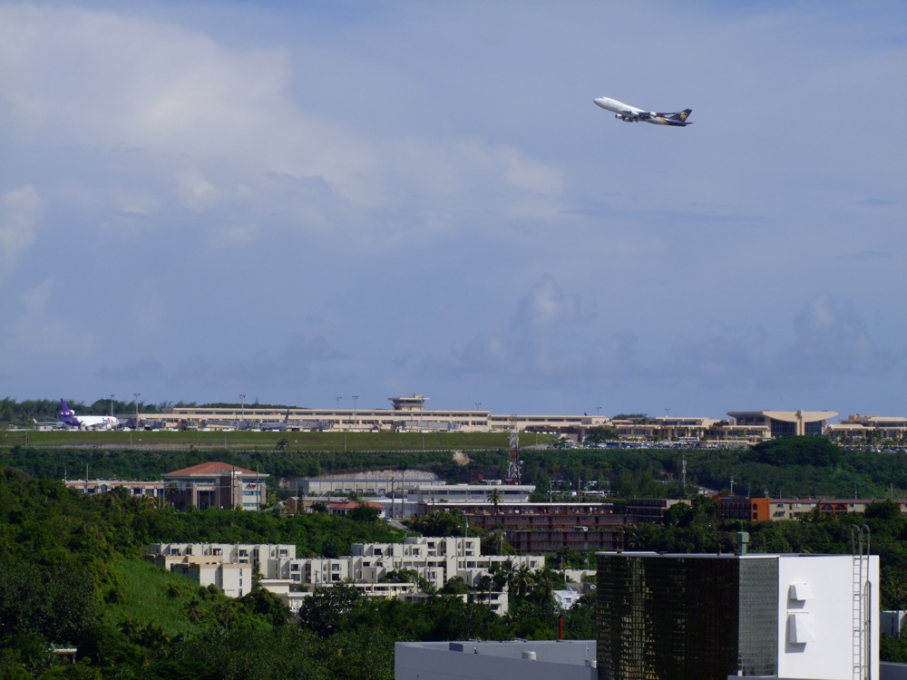 …そして、現地時間(グアムの方が、日本より1時間早いです)の14:00頃にグアムに到着。その1時間後にはホテルに着き、とりあえず左上写真のタモン湾の景色を堪能します♪…ついに南の島にやってきたという感覚と共に、やっと、のんびり出来そうな気配も漂ってきたところでしょうか(笑)。そして視線を後ろの方にやれば、先程到着したグアム国際空港から、貨物機が離陸していくのが見えました(右上写真参照)。ホテル群から空港が近いグアムならではの光景ですが、これがまた個人的には至福の時間でもあったのです。さて、今回はどのようにグアムを滞在していきましょうか…。