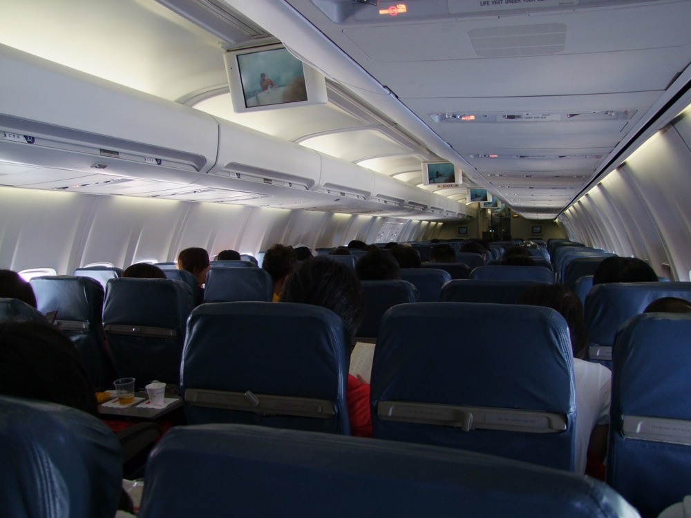 B757は最新の飛行機では無いので、現在のボーイング787やエアバスA380等に比べるとクラシカルな雰囲気が漂っている感じですが、何だかアメリカっぽい雰囲気でもあるのは、グアムに向かう自分にとってはモチベーションが上がります(笑)♪…今回のグアム行きに利用した便は、成田空港が朝9:25発というもので、自宅を6:00には出なければいけない状態でした。前日のライブから家に帰ってきたのが深夜1:00頃だったので、言わば飛行機に乗る直前までが、バタバタしている状況だったのです…。そして飛行機に乗り込み、後は黙っていれば約3時間半でグアム島です。そして前述のアメリカらしい雰囲気に包まれて、一気に旅行気分へと変わっていくのでした。