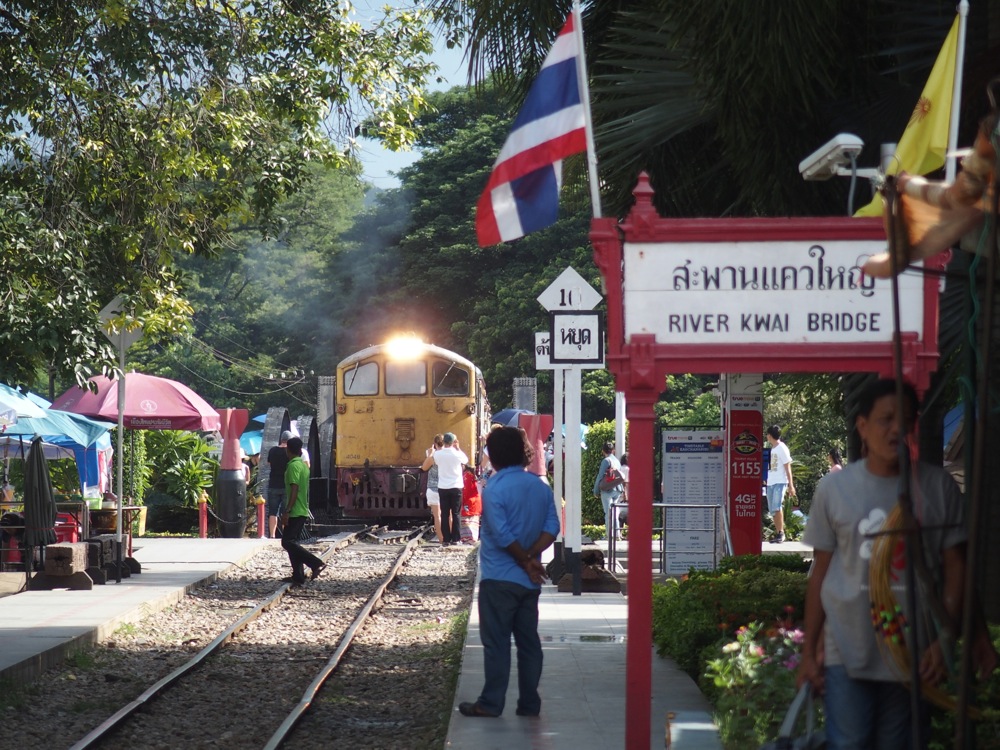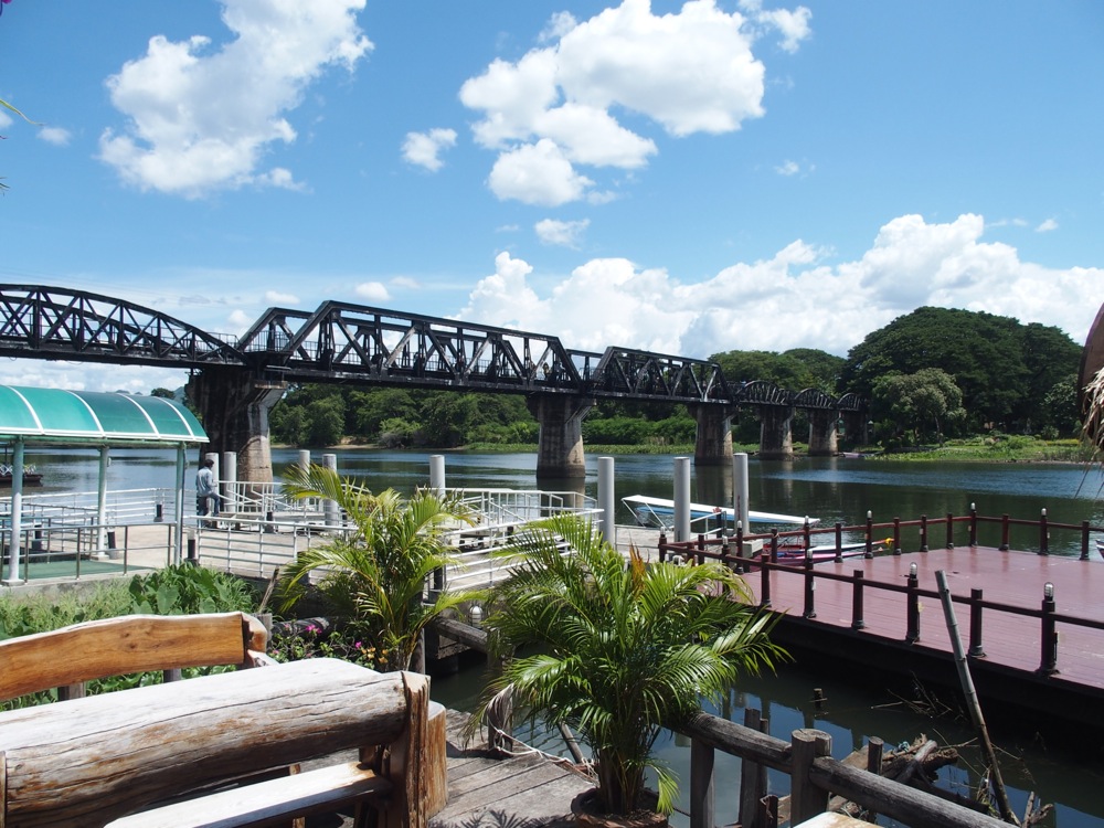 カンチャナブリーは、映画『戦場に架ける橋』で描かれた場所で、右上写真のクウェー川鉄橋はあまりにも有名です。勿論、現役の鉄道路線の鉄橋ですが、列車は1日に数本しか通らない為もあってか、歩いても渡れる事になっています。