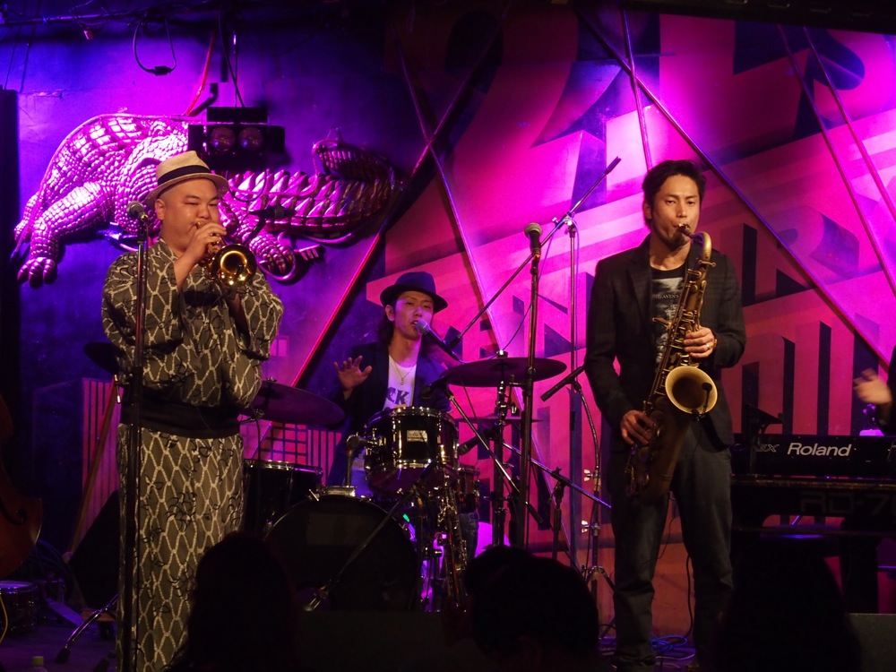 今回、お互いのバンドが、ホーンの入ったインストバンド…という括りになったイベントでしたが、それぞれにまた個性があり、互いの異なったカラーを存分に出せた1日になったのではないかと思います。それがこのイベントの狙いかもしれませんが、お客さん的にも1粒で2度美味しく、自分達にとっても、お互いに無い物を学ばせて貰った時間になりました。どうもありがとうございました。また一緒にやれる日が来る事を楽しみにしています!