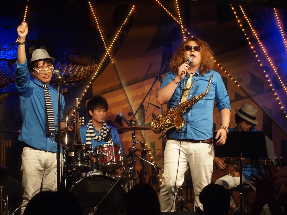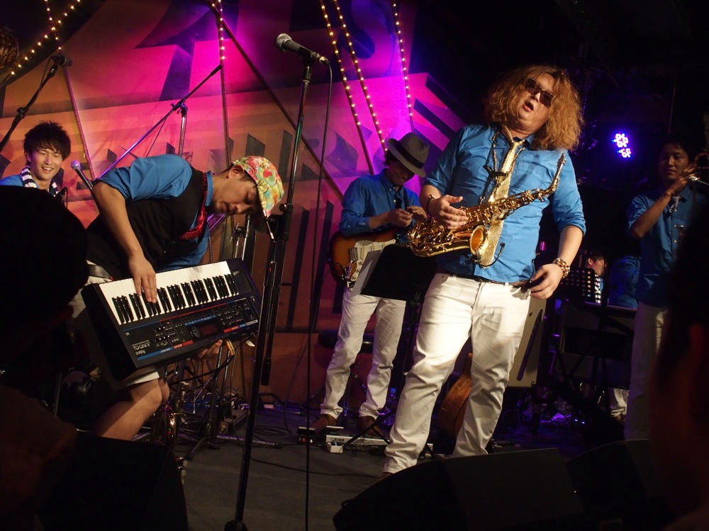 そしてここからはラストスパート3曲連続!…まずは、前回の自分達のライブとなっていた、すみだジャズ〔2014すみだジャズ、2DAYS参照〕で初お披露目となった“TKO”から始まり、“Volare Via”、そしてお客さんを立たせて“Dance 'em All”を皆で一緒に踊って終了となりました。この3曲は全てノリノリの曲なので、ステージをクライマックスに仕立てていきましたが、ステージの熱さと客席の熱さも一体感が出来てきて、非常に気持ちが沸き立たせられる時間です。今回も心から楽しんで演奏に打ち込む事が出来ました。これで、主催者である Star Bell Plus のステージに繋げられたと思います(笑)。