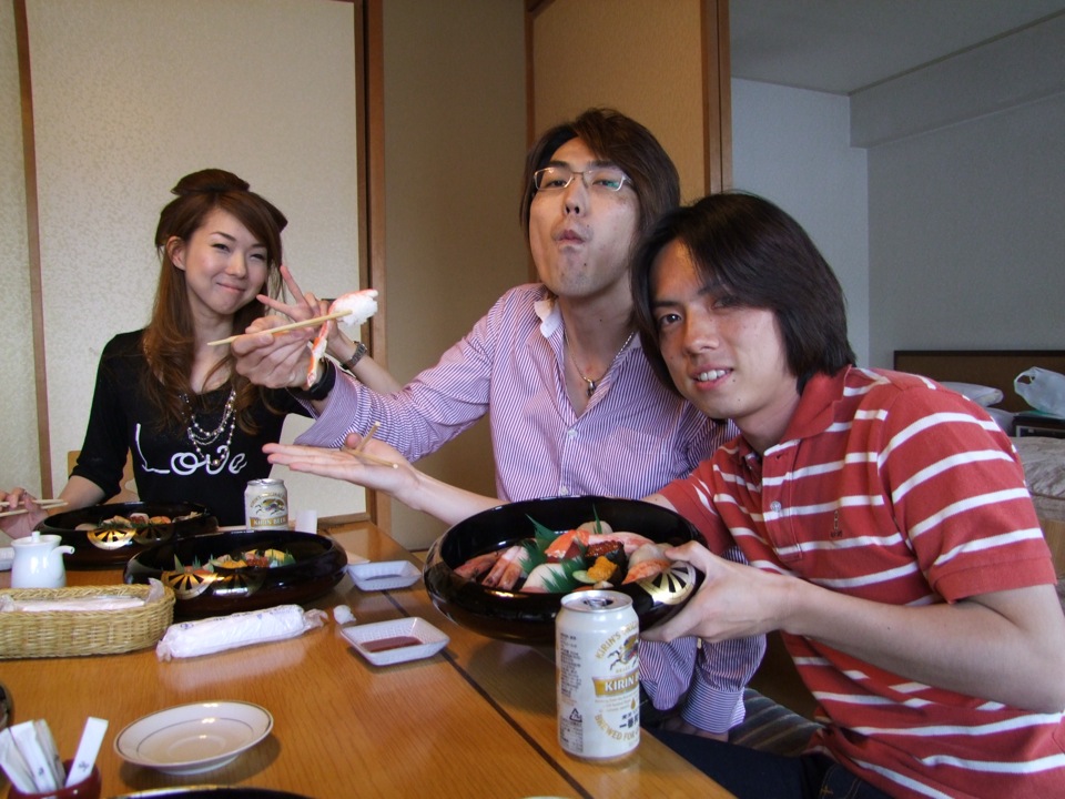 …そんな中、続々と他のメンバーも到着し、機材のセッティング、リハーサルの後は、待ちに待っていたお食事タイムへ(笑)!…ここではお寿司が用意され(ビールは持ち込み)、至福の時間は頂点に達してしまいました…。もうこの時点で大満足だったのですが、自分達は演奏に来たという大事な目的がある事を忘れてはいけません(笑)。少々のお休みの後、改めて本番へと臨んだものでした。