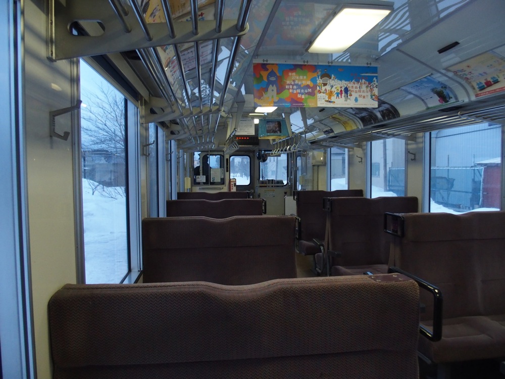 車掌さんによって石炭が焼べられ、更にその温かさが増してきます。…というか、ストーブが目の前に位置する席に座った為か、むしろ暑過ぎるぐらいだったかもしれません。本来ならば、外は吹雪の中での有り難みというのを感じたりするのでしょうが、この日は幸か不幸か絶好の天気だったので(笑)、日差しの強さも相まって、汗が滲んでくるような状態でもありました。