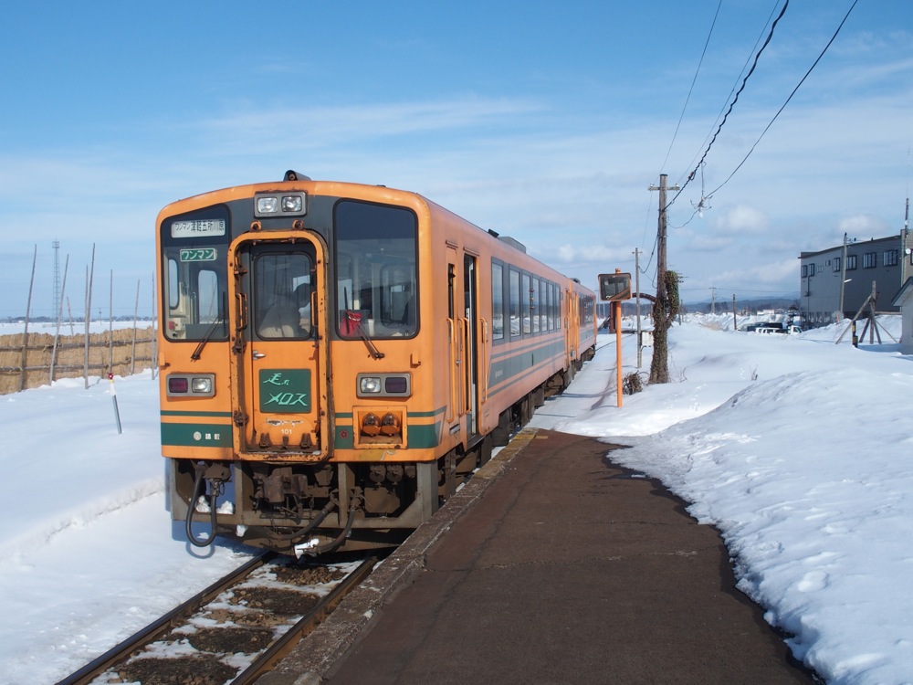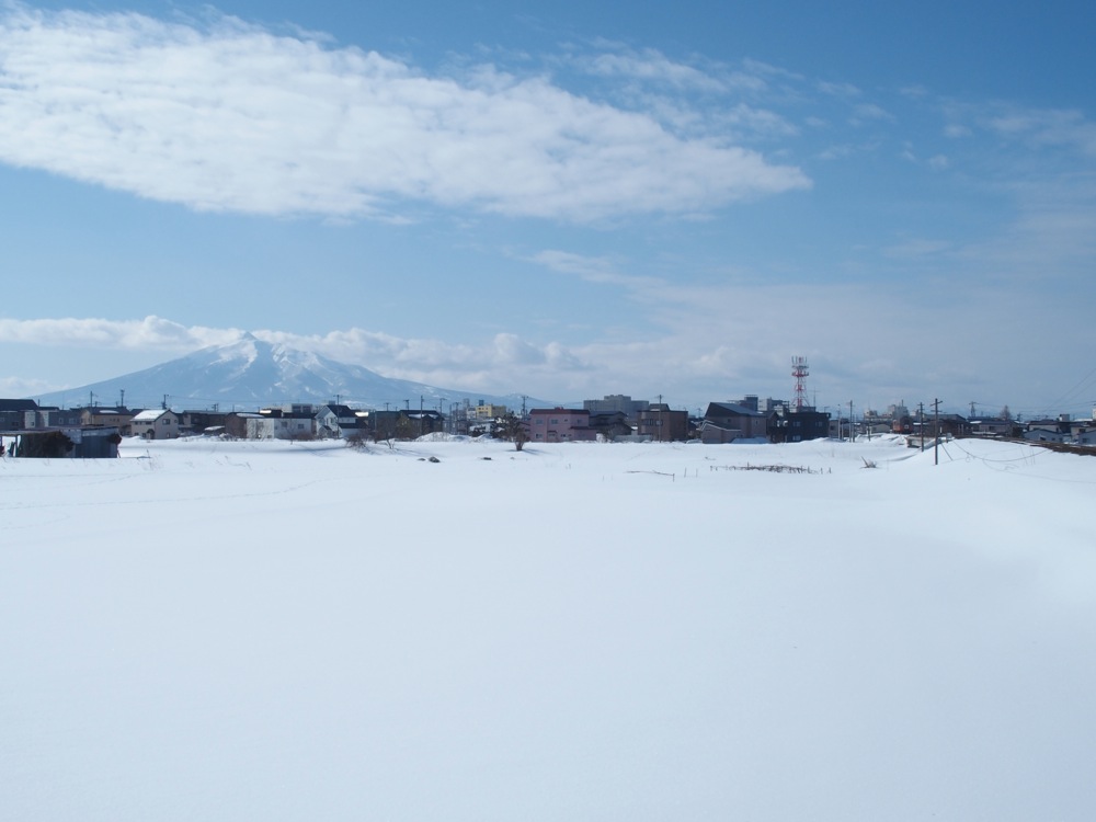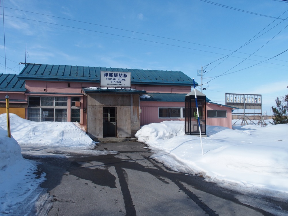 これらの駅間は1kmとなっていますが、歩いていくと多少大回りになるのと、今の時期は積雪で通れない道もあったりしたので、道のり的にはなかなかの距離になっていた事でしょう。周囲は開けていて、正に一面銀世界という感じでしたが、その向こうには相変わらず綺麗な岩木山も望めたりと、正に天候に恵まれた1日だと改めて思いましたね。